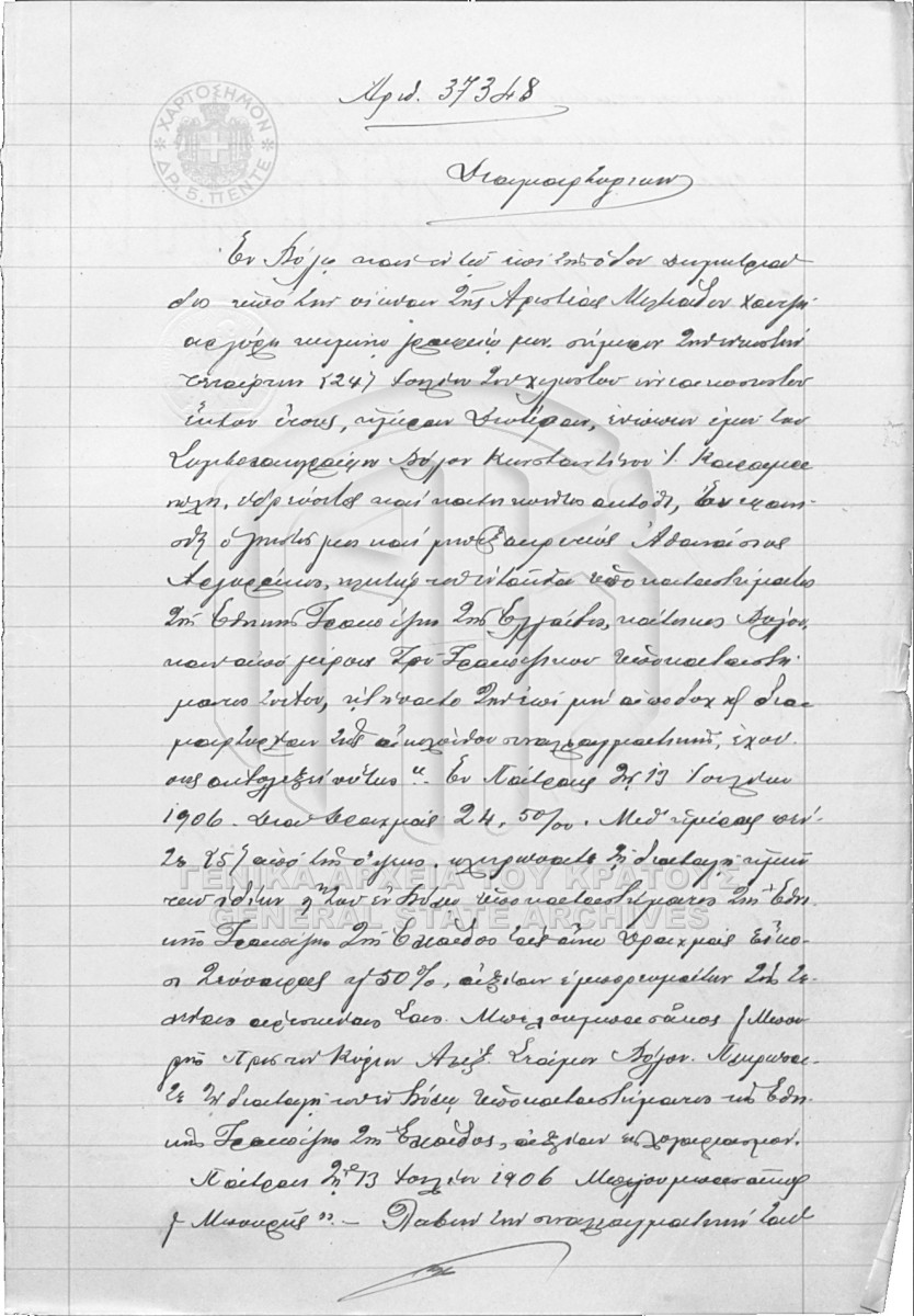 [Item] GRGSA-MAG_NOT002.01.F000075.IT037348 Item #37348 - KARAMANOLIS NOTARIAL ARCHIVE [24 Ιουλίου 1906] Notarial deed. Notice of protest. |