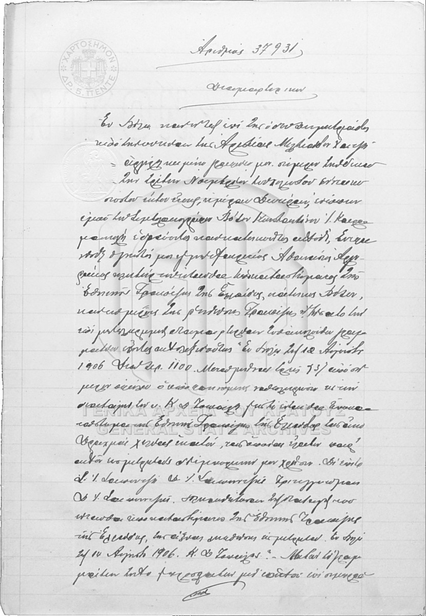 [Item] GRGSA-MAG_NOT002.01.F000077.IT037931 Item #37931 - KARAMANOLIS NOTARIAL ARCHIVE [13 Νοεμβρίου 1906] Notarial deed. Notice of protest. |