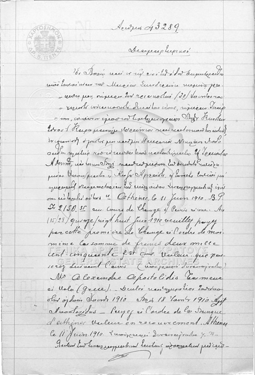 [Τεκμήριο] GRGSA-MAG_NOT002.01.F000088.IT043289 Τεκμήριο #43289 [30 Ιουνίου 1910] Συμβολαιογραφική πράξη. Διαμαρτυρικό. |