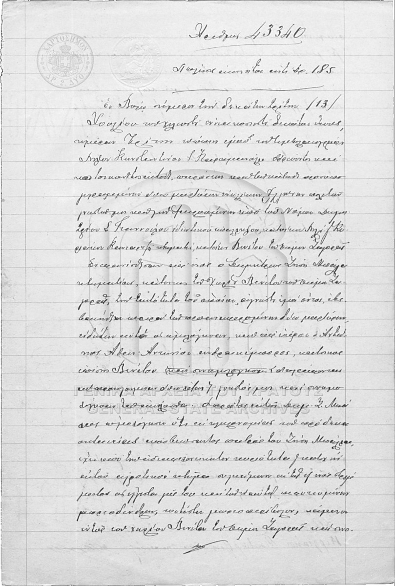 [Pièce] GRGSA-MAG_NOT002.01.F000088.IT043340 Pièce #43340 [13 Ιουλίου 1910] Συμβολαιογραφική πράξη. Πώληση ακινήτου. |