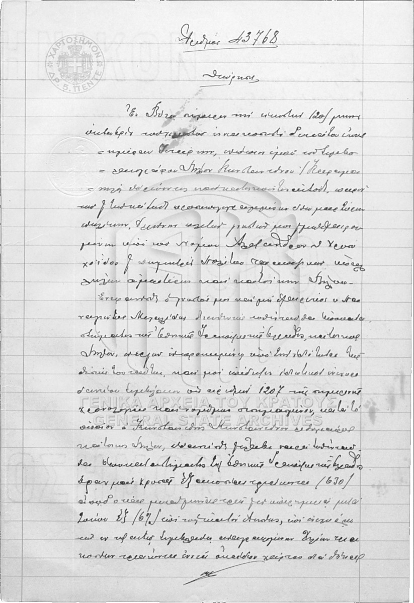[Τεκμήριο] GRGSA-MAG_NOT002.01.F000089.IT043768 Τεκμήριο #43768 [20 Οκτωβρίου 1910] Συμβολαιογραφική πράξη. Θεώρηση. |