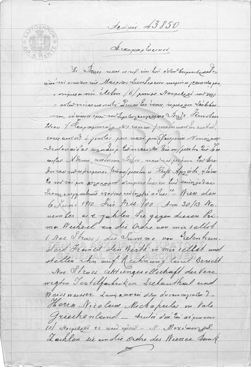 |  | [Item] GRGSA-MAG_NOT002.01.F000089.IT043850 Item #43850 - KARAMANOLIS NOTARIAL ARCHIVE [6 Νοεμβρίου 1910] Notarial deed. Notice of protest. |