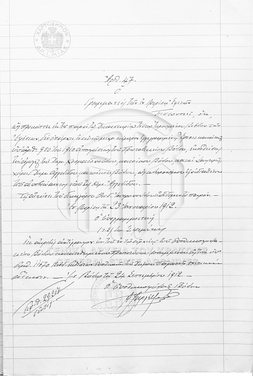 [Φάκελος] GRGSA-MAG_NOT002.01.F000089 Φάκελος #089 [1910 - 1911] Περιεχόμενα: Συμβολαιογραφική πράξη. Δάνειο. Συμβολαιογραφική πράξη. Απόδειξη πληρωμής. Συμβολαιογραφική πράξη. Πληρωμή τόκων. Συμβολ... |