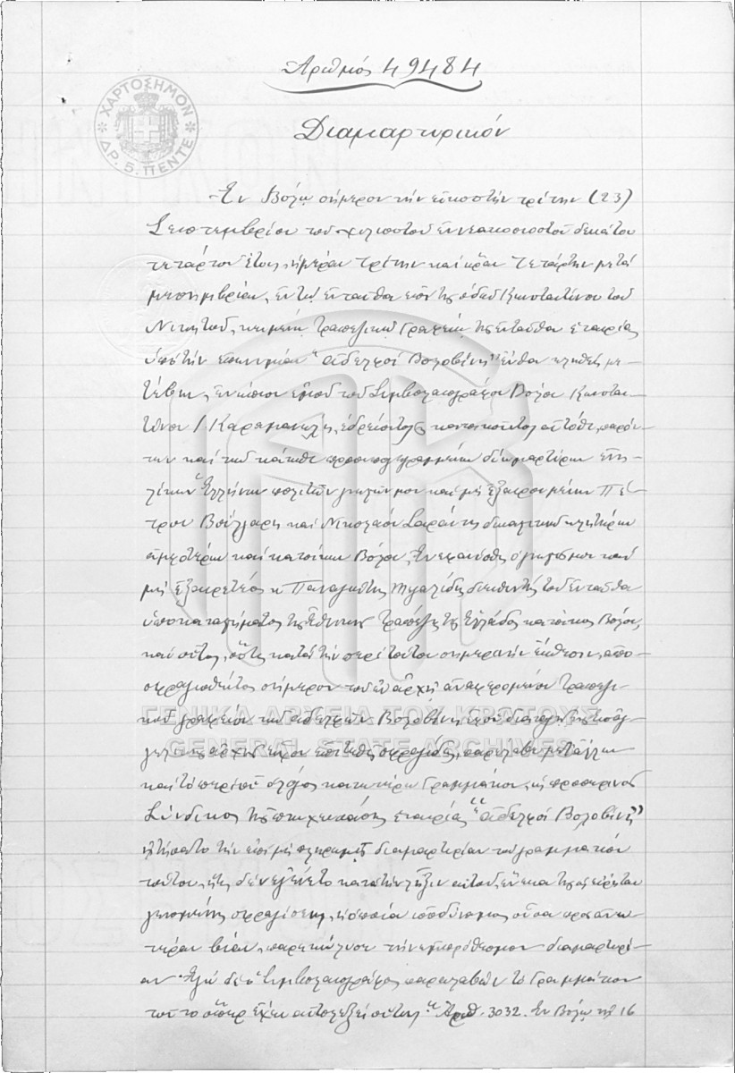 [Τεκμήριο] GRGSA-MAG_NOT002.01.F000099.IT049484 Τεκμήριο #49484 [23 Σεπτεμβρίου 1914] Συμβολαιογραφική πράξη. Διαμαρτυρικό. |
