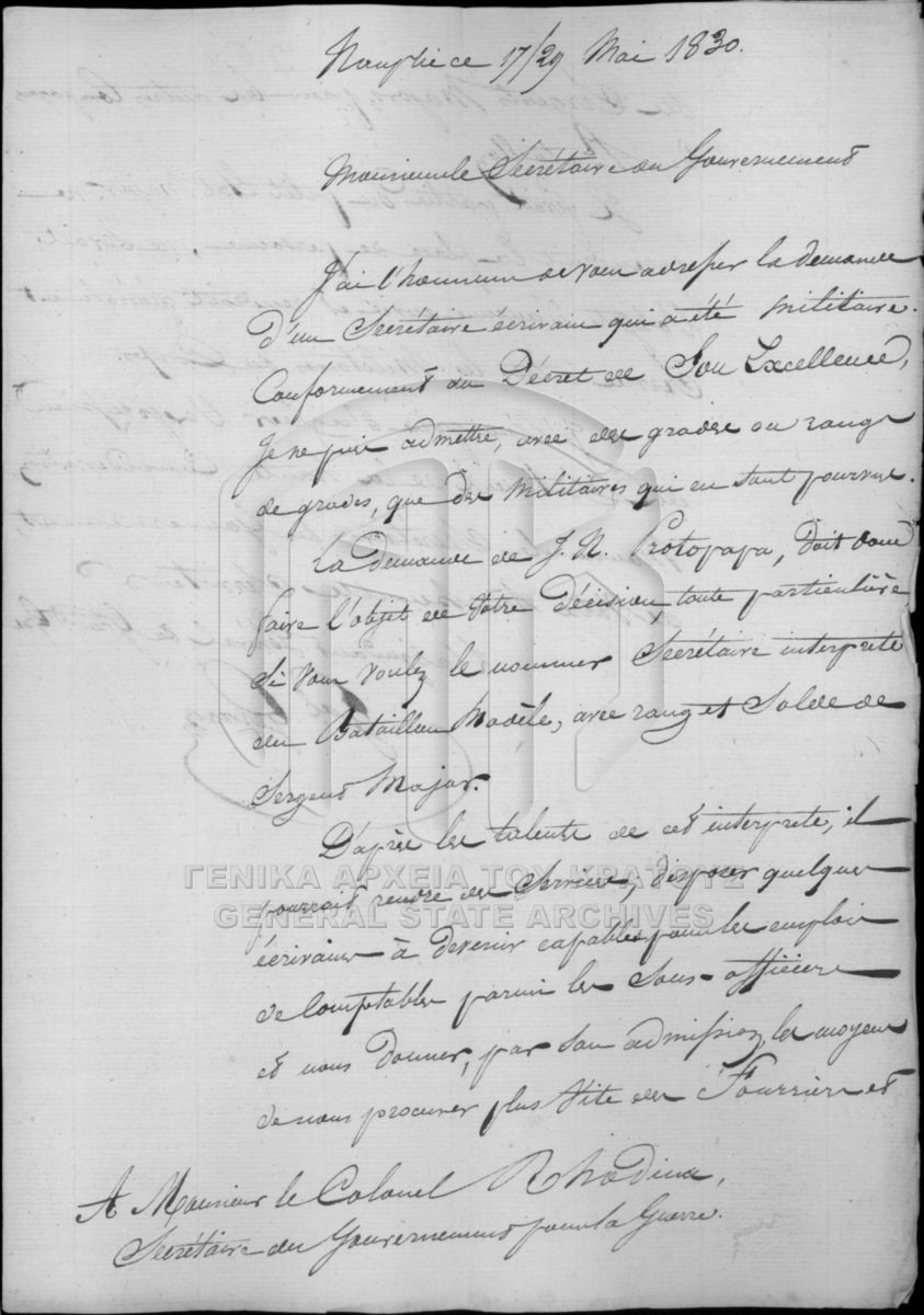 Φάκελος #009 - Γραμματεία/Υπουργείο των Στρατιωτικών  [1830]