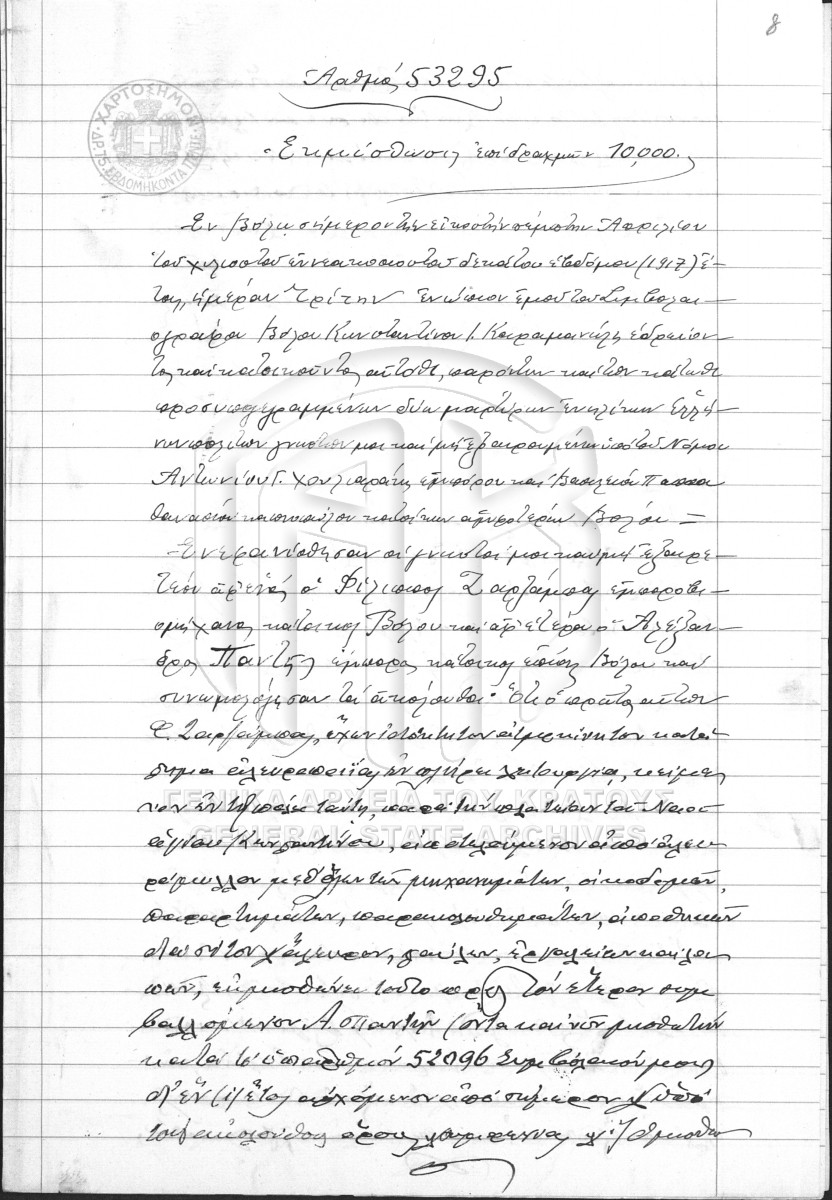 [Item] GRGSA-MAG_NOT002.01.F000104.IT053295 Item #53295 - KARAMANOLIS NOTARIAL ARCHIVE [25 Απριλίου 1917] Notarial deed. Lease. |