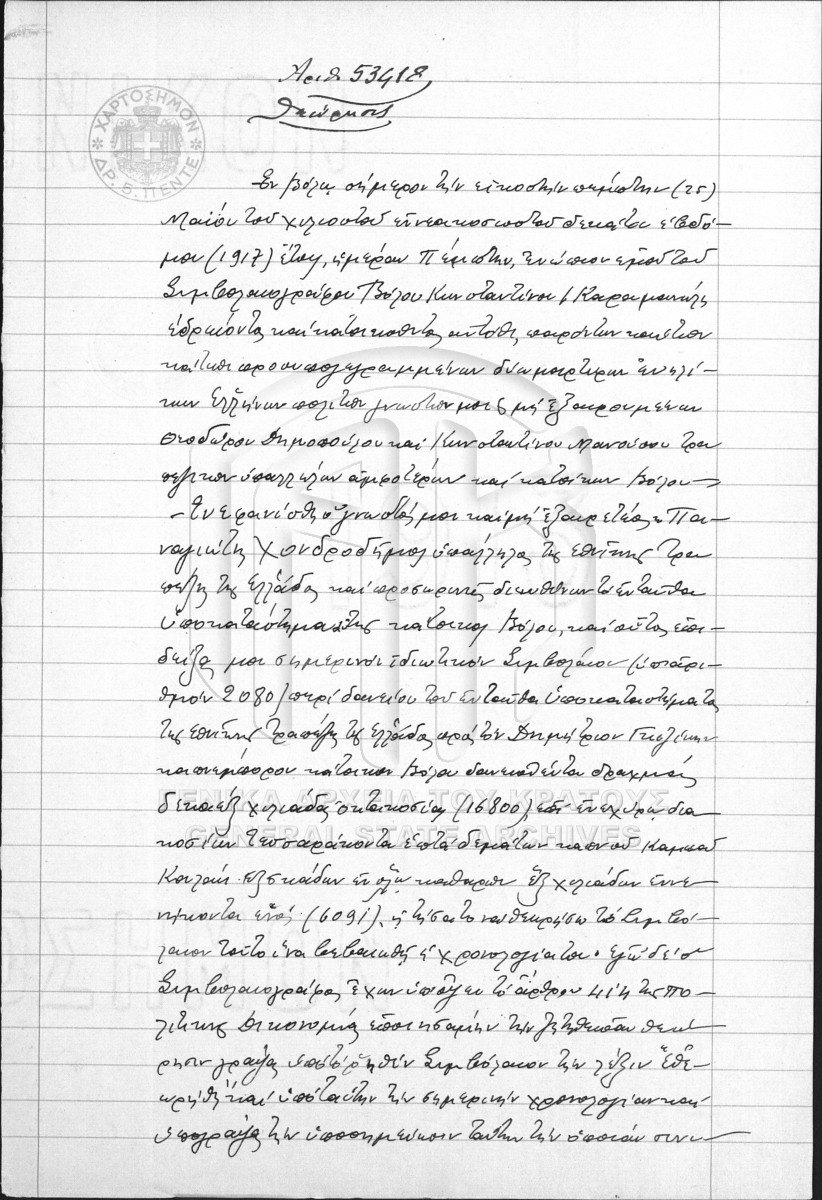 [Item] GRGSA-MAG_NOT002.01.F000104.IT053418 Item #53418 - KARAMANOLIS NOTARIAL ARCHIVE [25 Μαΐου 1917] Notarial deed. Attestation. |
