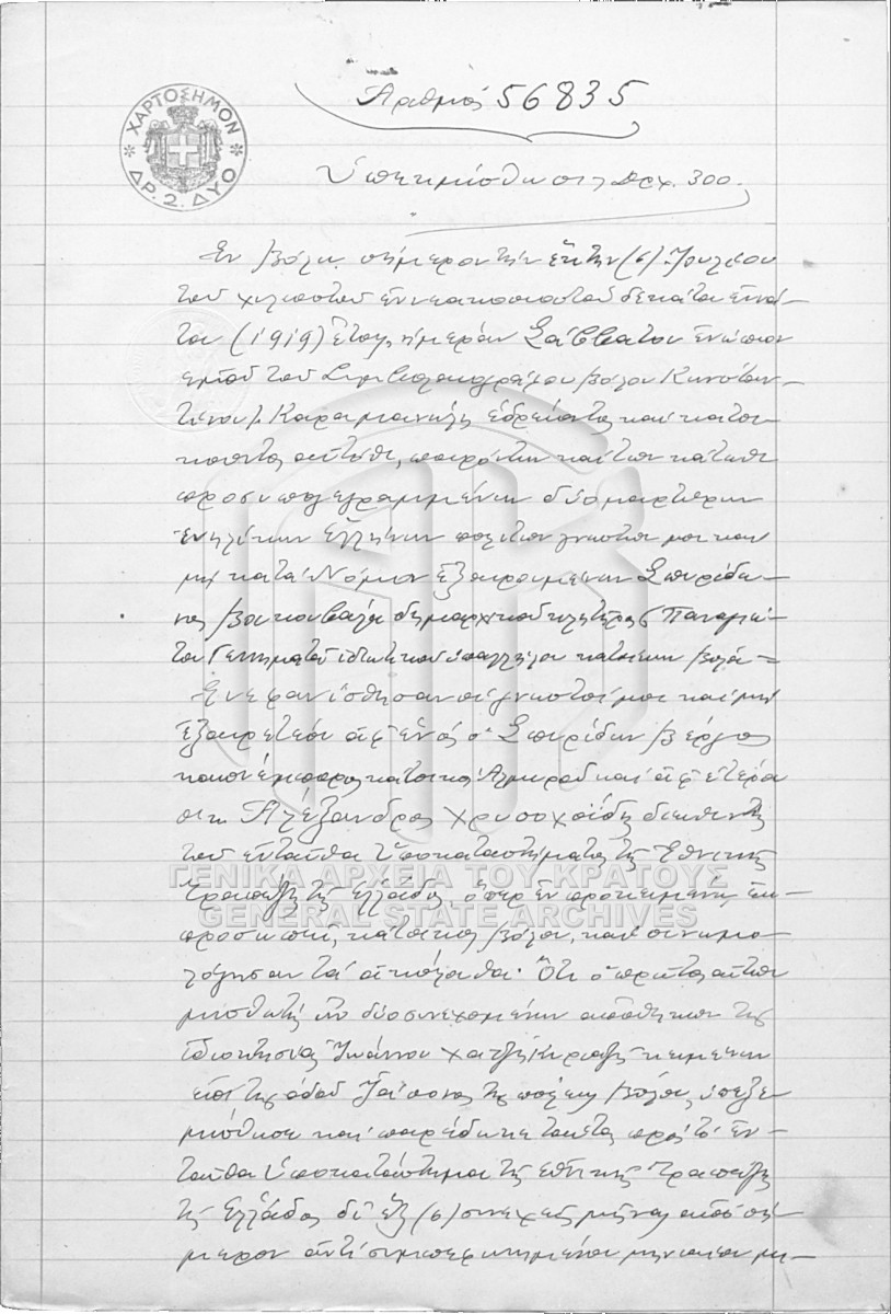 [Item] GRGSA-MAG_NOT002.01.F000110.IT056835 Item #56835 - KARAMANOLIS NOTARIAL ARCHIVE [6 Ιουλίου 1919] Notarial deed. Sublease. |
