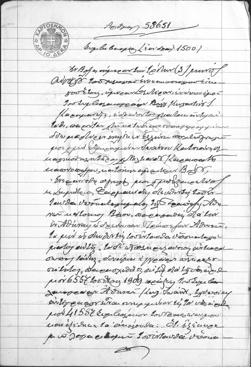 [Item] GRGSA-MAG_NOT002.01.F000113.IT058651 Item #58651 - KARAMANOLIS NOTARIAL ARCHIVE [3 Αυγούστου 1920] Notarial deed. Deed of Settlement. |