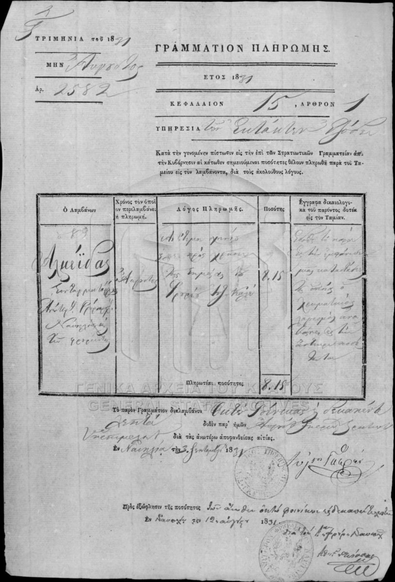 Φάκελος #108 - Γραμματεία/Υπουργείο των Στρατιωτικών  [1831]