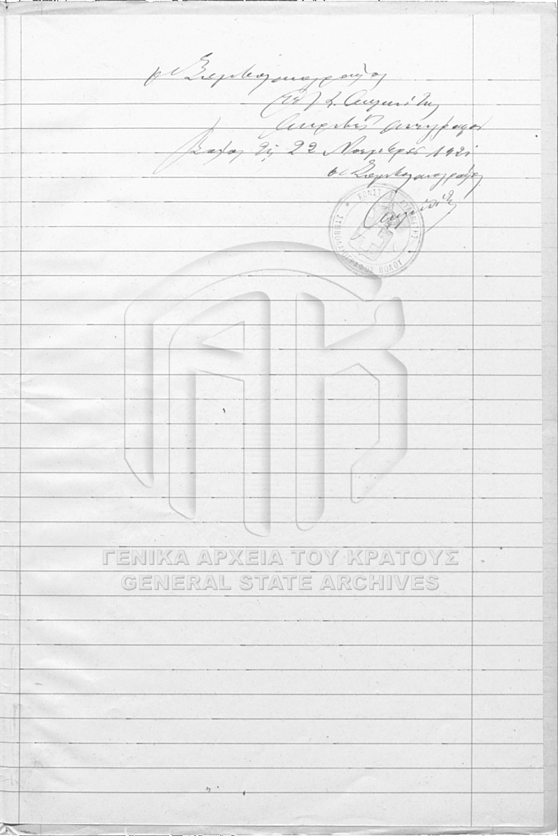[Pièce] GRGSA-MAG_NOT002.01.F000117.IT060640 Pièce #60640 [23 Νοεμβρίου 1921] Συμβολαιογραφική πράξη. Εξόφληση συμβολαίου. |