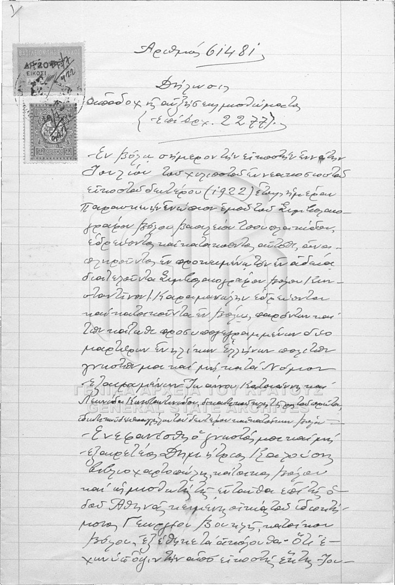 Item #61481 - KARAMANOLIS NOTARIAL ARCHIVE  [29 Ιουλίου 1922]