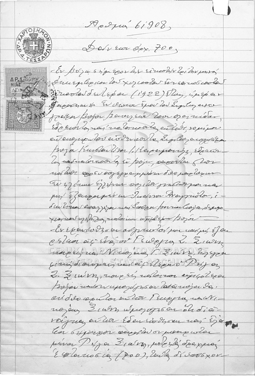 [Pièce] GRGSA-MAG_NOT002.01.F000120.IT061908 Pièce #61908 [23 Δεκεμβρίου 1922] Συμβολαιογραφική πράξη. Δάνειο. |