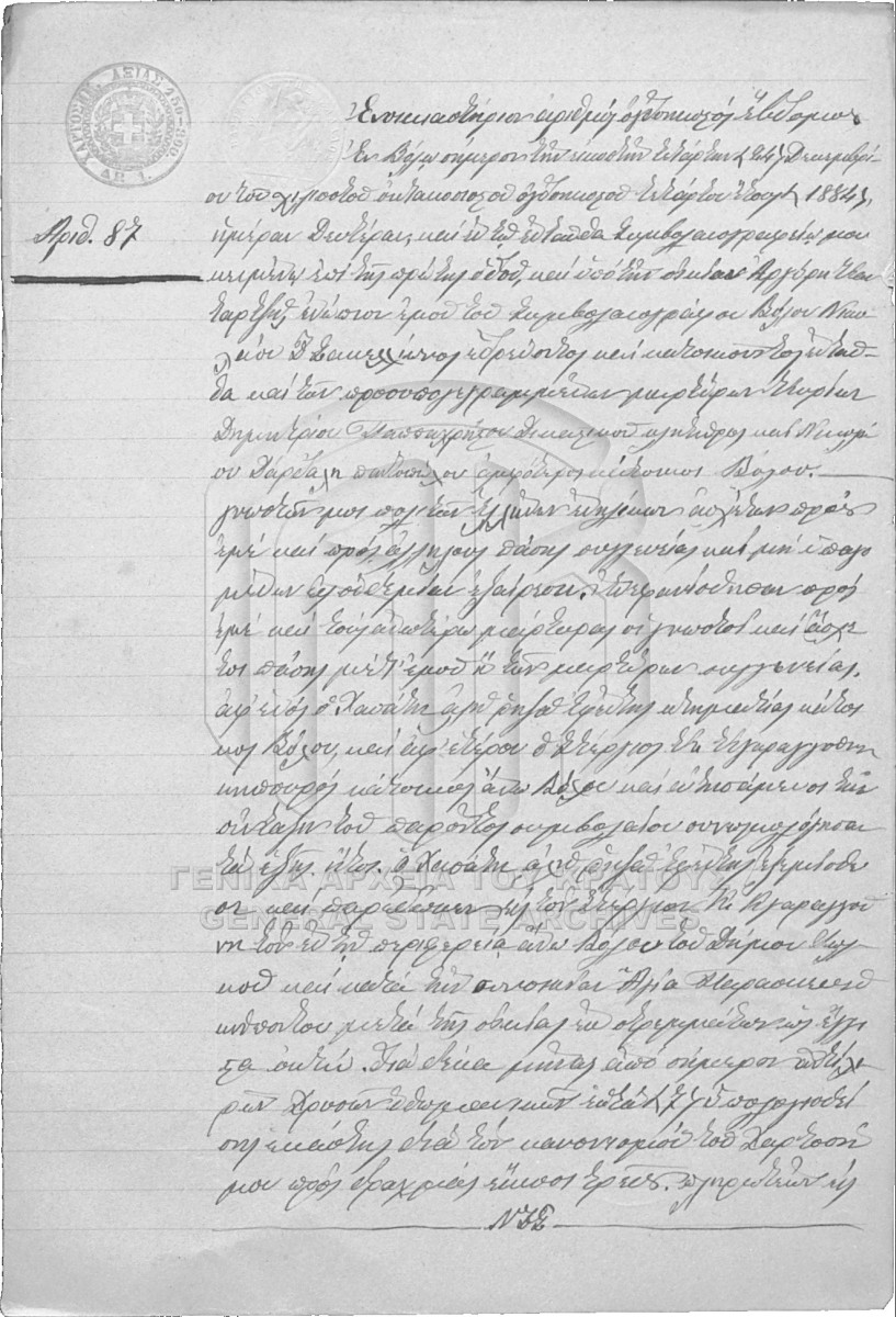 [Τεκμήριο] GRGSA-MAG_NOT004.02.F000001.IT000087 Τεκμήριο #087 [24 Δεκεμβρίου 1884] Συμβολαιογραφική πράξη. Ενοικιαστήριο. |
