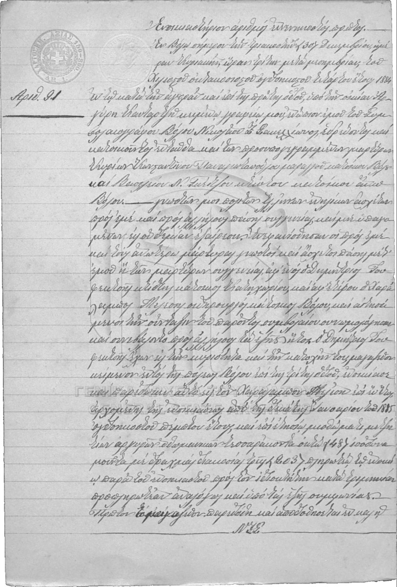 Item #091 - NIKOLAOS SAKELLION NOTARIAL ARCHIVE  [30 Δεκεμβρίου 1884]