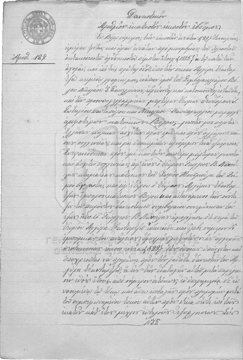 [Item] GRGSA-MAG_NOT004.02.F000001.IT000127 Item #127 - NIKOLAOS SAKELLION NOTARIAL ARCHIVE [29 Ιανουαρίου 1885] Notarial deed. Lending agreement. |