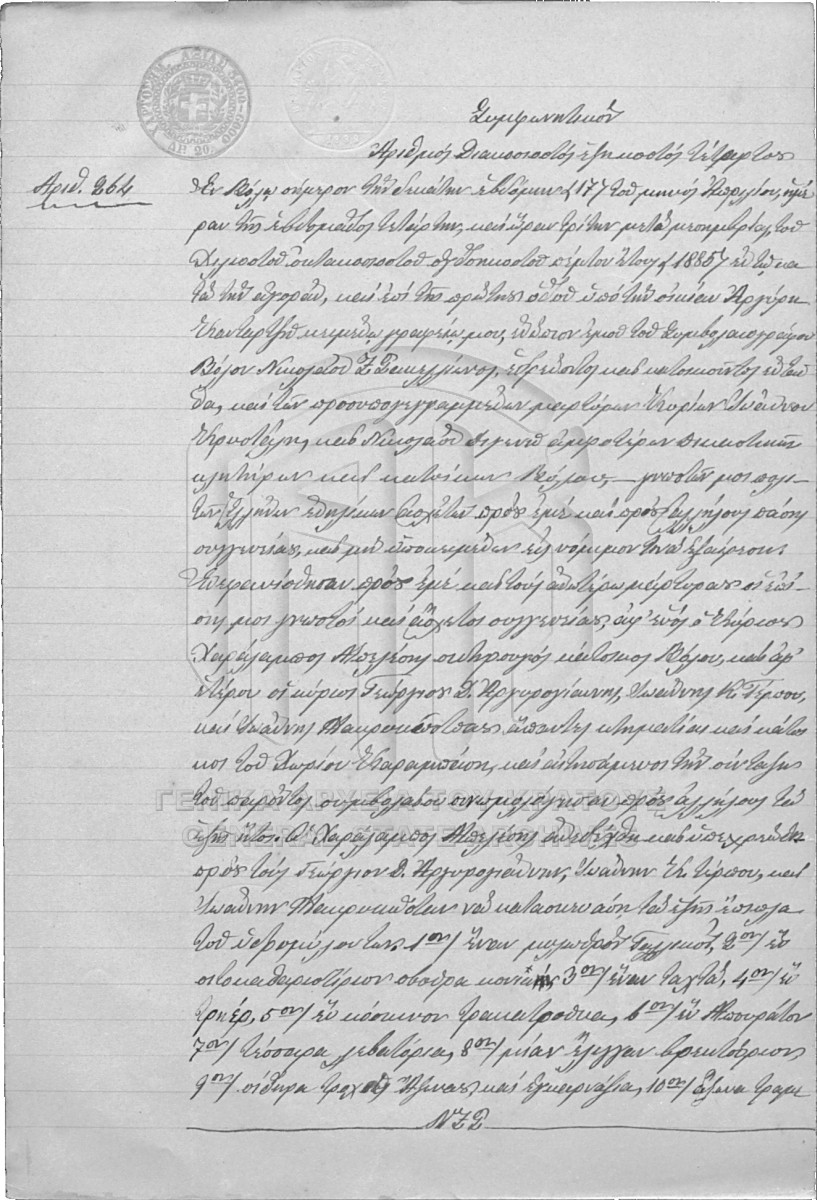 [Item] GRGSA-MAG_NOT004.02.F000001.IT000264 Item #264 - NIKOLAOS SAKELLION NOTARIAL ARCHIVE [17 Απριλίου 1885] Notarial deed. Agreement. |