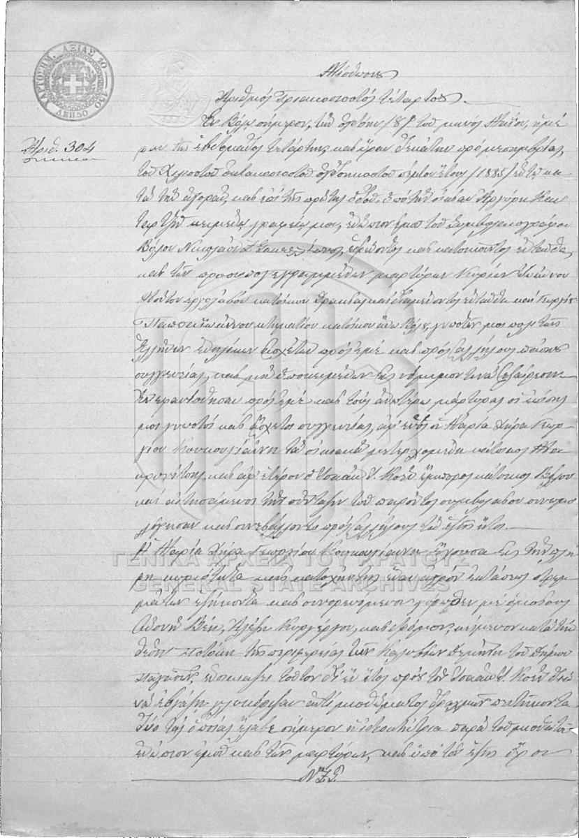 [Τεκμήριο] GRGSA-MAG_NOT004.02.F000001.IT000304 Τεκμήριο #304 [8 Μαΐου 1885] Συμβολαιογραφική πράξη. Μίσθωση. |