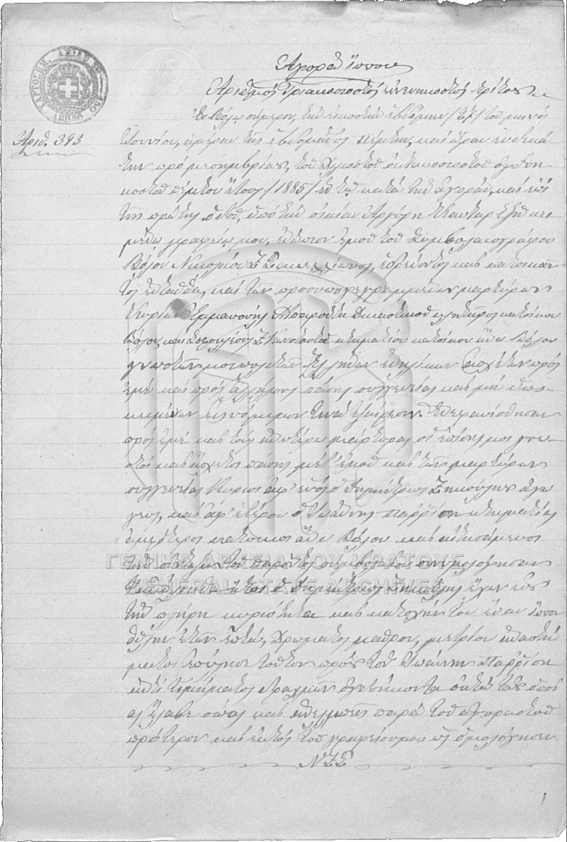 Item #393 - NIKOLAOS SAKELLION NOTARIAL ARCHIVE  [27 Ιουνίου 1885]