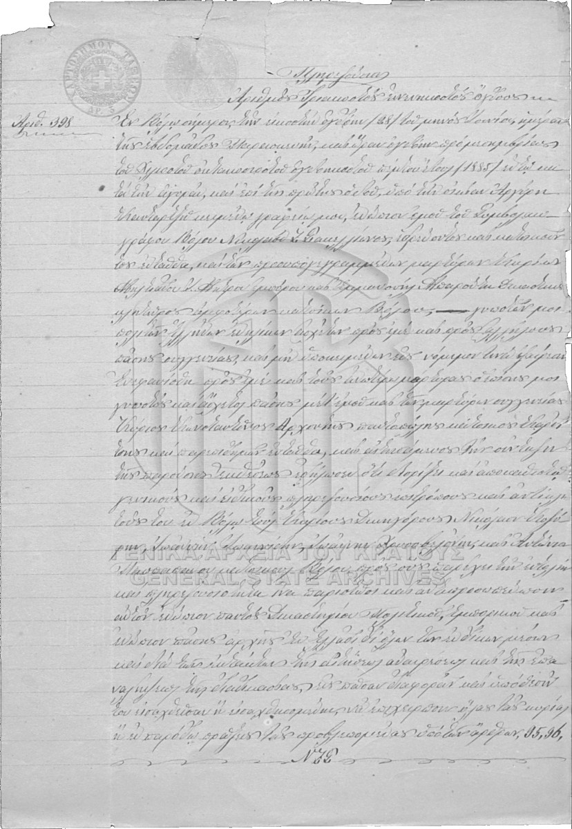 Item #398 - NIKOLAOS SAKELLION NOTARIAL ARCHIVE  [28 Ιουνίου 1885]
