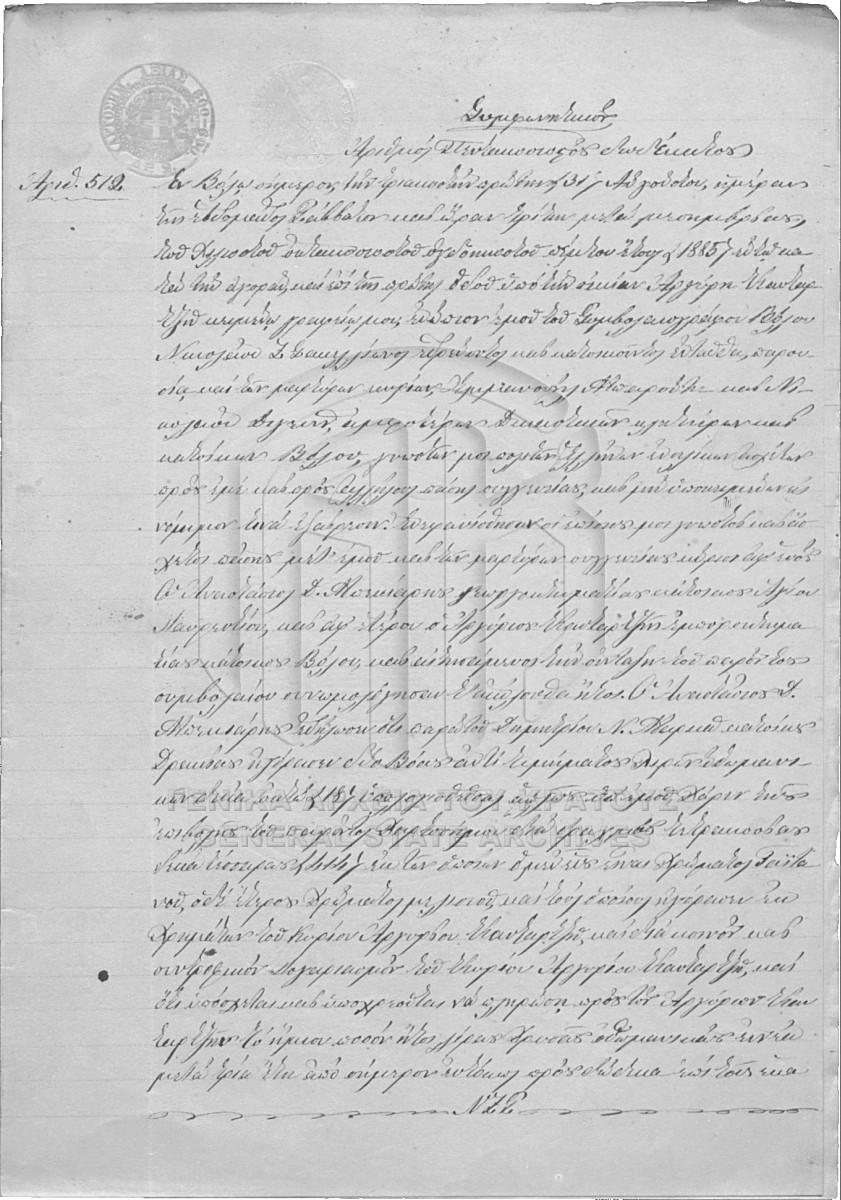 [Item] GRGSA-MAG_NOT004.02.F000001.IT000512 Item #512 - NIKOLAOS SAKELLION NOTARIAL ARCHIVE [31 Αυγούστου 1885] Notarial deed. Agreement. |