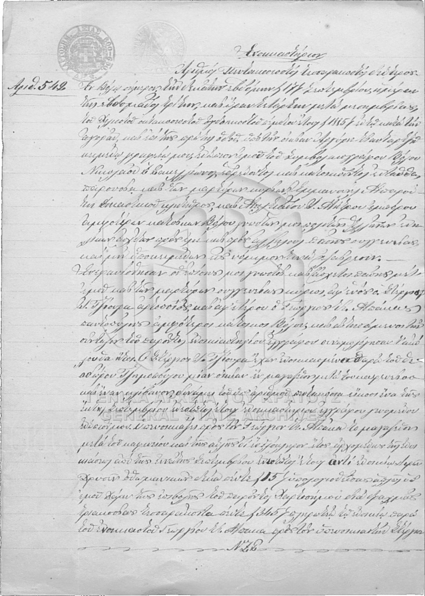 [Τεκμήριο] GRGSA-MAG_NOT004.02.F000001.IT000542 Τεκμήριο #542 [17 Σεπτεμβρίου 1885] Συμβολαιογραφική πράξη. Ενοικιαστήριο. |