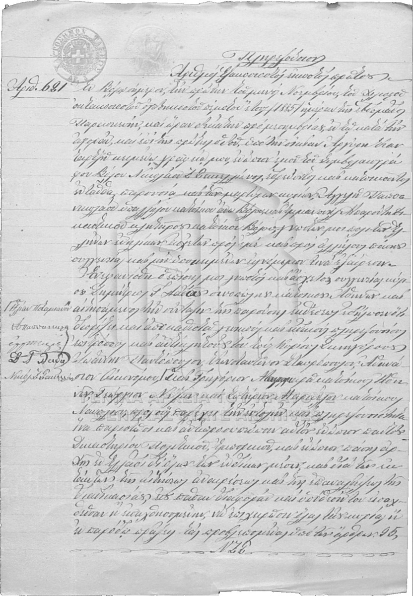 Item #621 - NIKOLAOS SAKELLION NOTARIAL ARCHIVE  [1 Νοεμβρίου 1885]
