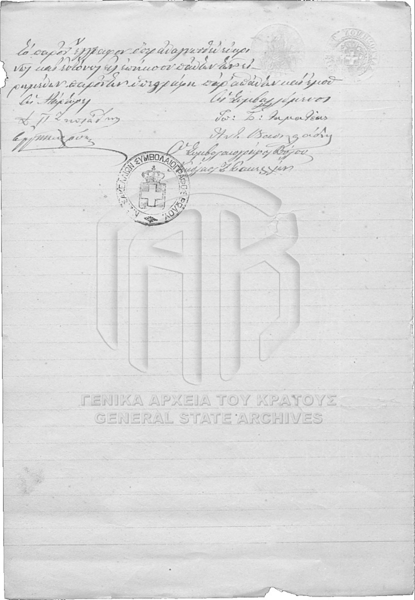 Item #622 - NIKOLAOS SAKELLION NOTARIAL ARCHIVE  [1 Νοεμβρίου 1885]