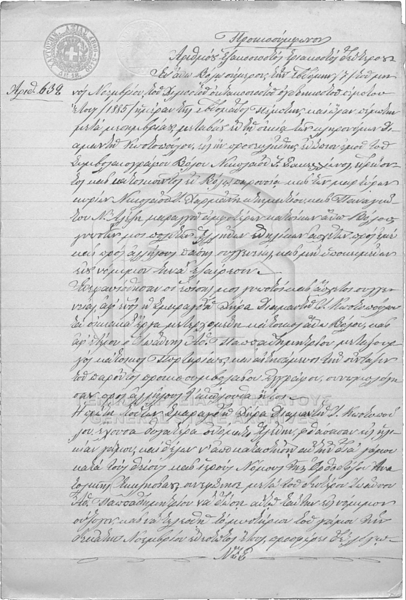 [Item] GRGSA-MAG_NOT004.02.F000002.IT000632 Item #632 - NIKOLAOS SAKELLION NOTARIAL ARCHIVE [7 Νοεμβρίου 1885] Notarial deed. Dowry deed. |