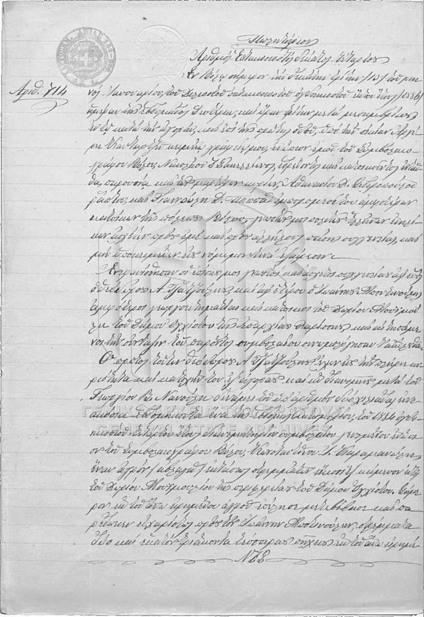 [Item] GRGSA-MAG_NOT004.02.F000002.IT000714 Item #714 - NIKOLAOS SAKELLION NOTARIAL ARCHIVE [13 Ιανουαρίου 1886] Notarial deed. Sale agreement. |