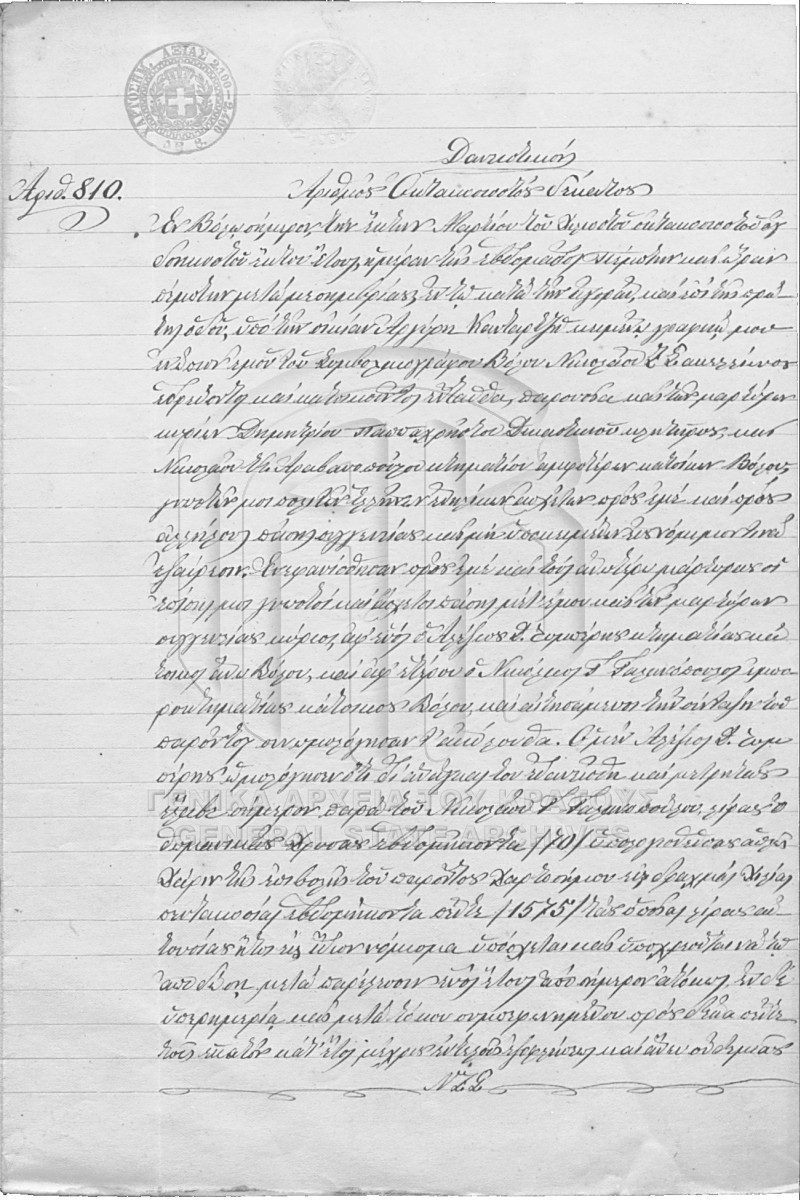 [Τεκμήριο] GRGSA-MAG_NOT004.02.F000002.IT000810 Τεκμήριο #810 [6 Μαρτίου 1886] Συμβολαιογραφική πράξη. Δανειστικό. |