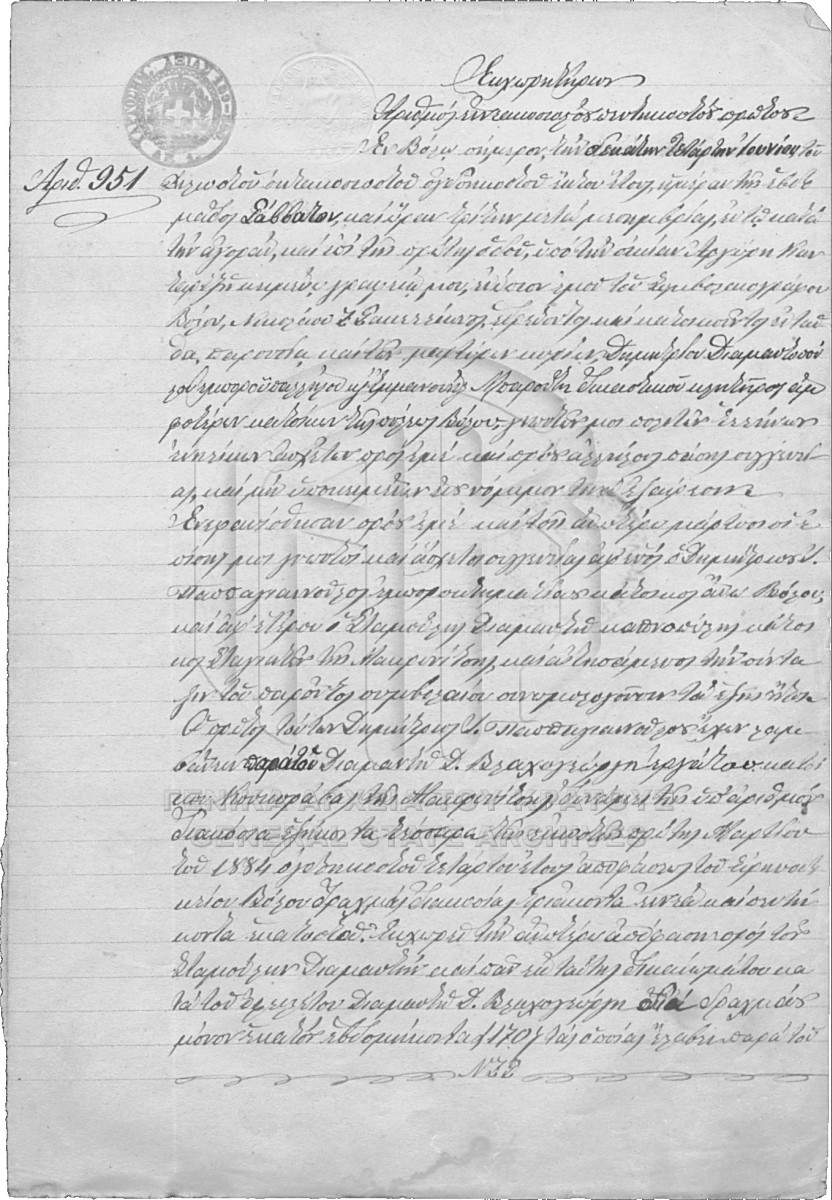 [Item] GRGSA-MAG_NOT004.02.F000002.IT000951 Item #951 - NIKOLAOS SAKELLION NOTARIAL ARCHIVE [14 Ιουνίου 1886] Notarial deed. Assignment deed. |