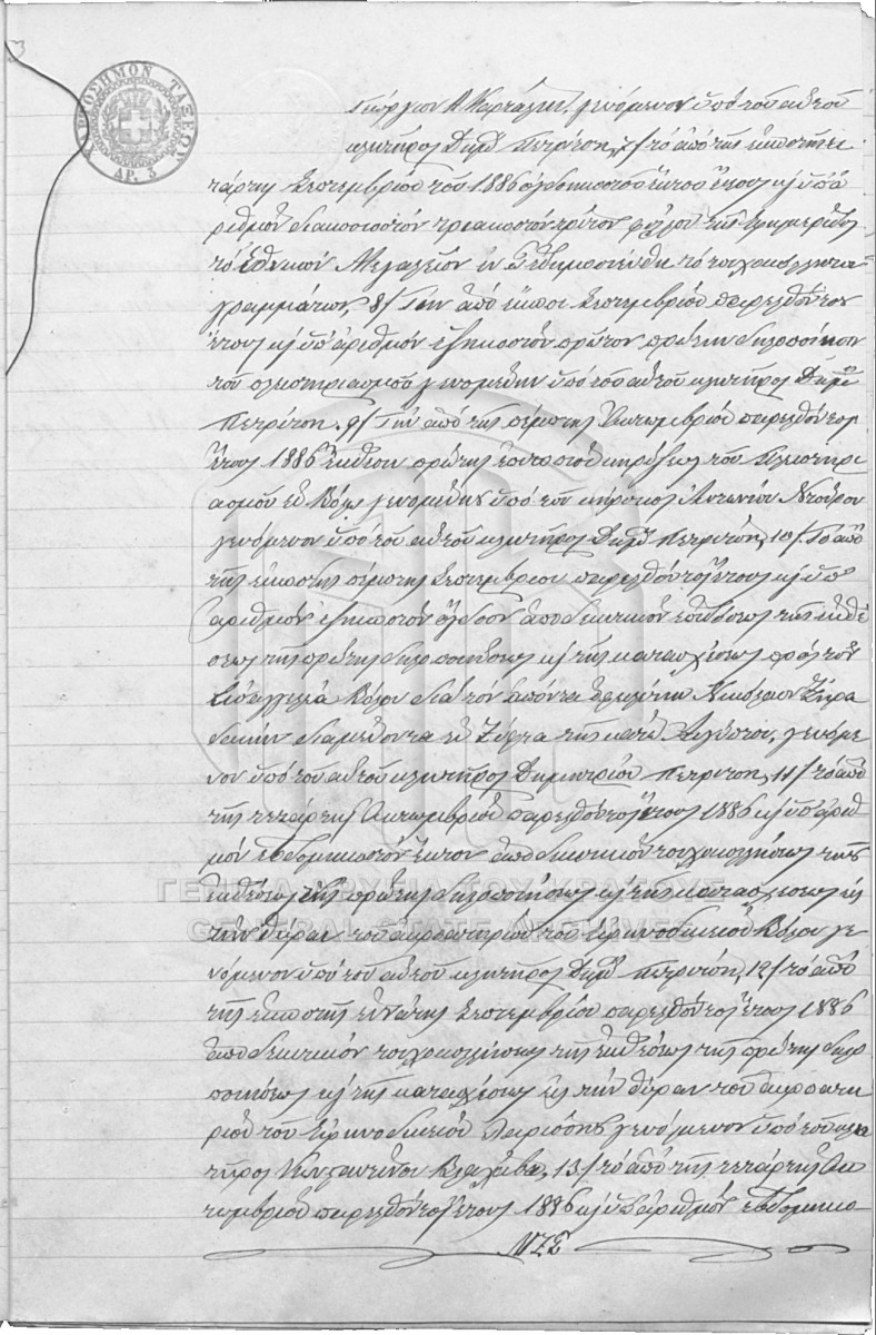 [Item] GRGSA-MAG_NOT004.02.F000003.IT001350 Item #1350 - NIKOLAOS SAKELLION NOTARIAL ARCHIVE [25 Ιανουαρίου 1887] Notarial deed. Public sale of real estate properties. |