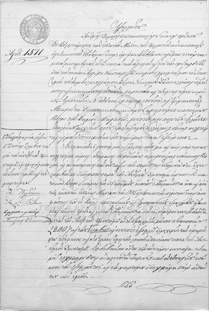 [Item] GRGSA-MAG_NOT004.02.F000003.IT001511 Item #1511 - NIKOLAOS SAKELLION NOTARIAL ARCHIVE [9 Μαΐου 1887] Notarial deed. Payment deed. |