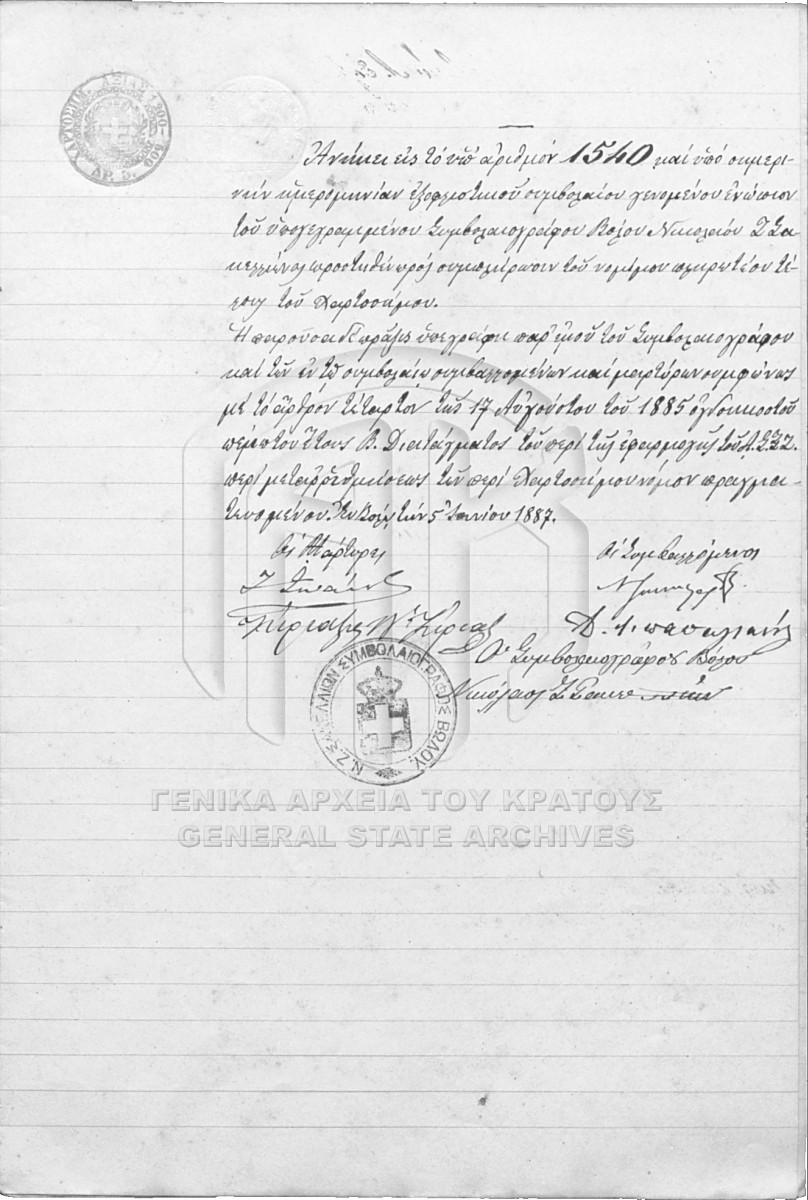 [Item] GRGSA-MAG_NOT004.02.F000003.IT001540 Item #1540 - NIKOLAOS SAKELLION NOTARIAL ARCHIVE [5 Ιουνίου 1887] Notarial deed. Payment deed. |