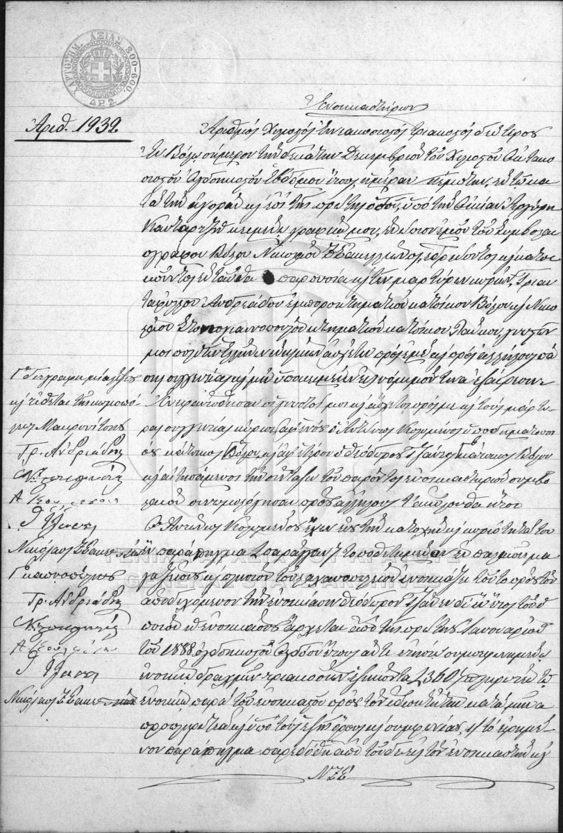 [Τεκμήριο] GRGSA-MAG_NOT004.02.F000005.IT001932 Τεκμήριο #1932 [10 Δεκεμβρίου 1887] Συμβολαιογραφική πράξη. Ενοικιαστήριο. |