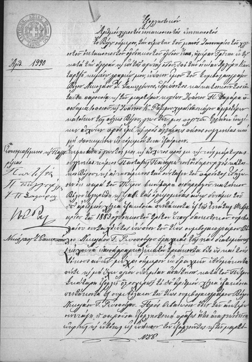 [Pièce] GRGSA-MAG_NOT004.02.F000005.IT001990 Pièce #1990 [5 Ιανουαρίου 1888] Συμβολαιογραφική πράξη. Εξοφλητικό. |