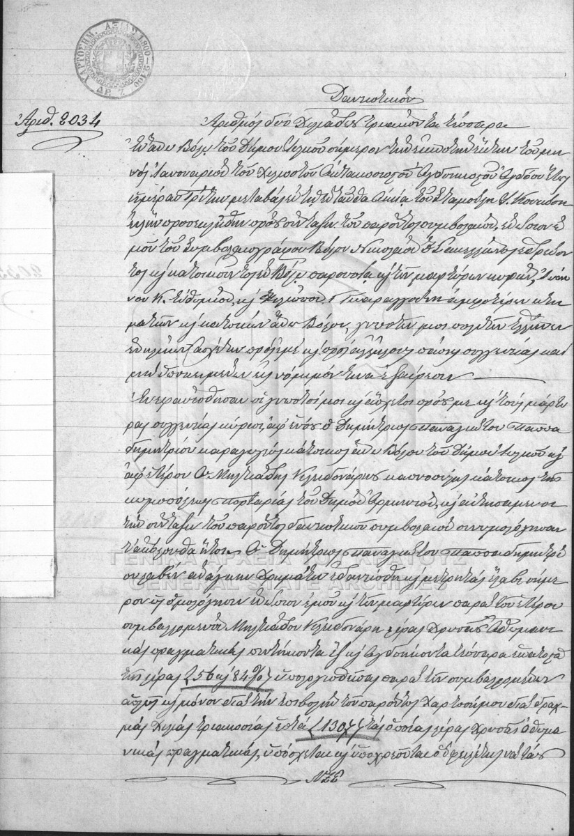 [Τεκμήριο] GRGSA-MAG_NOT004.02.F000005.IT002034 Τεκμήριο #2034 [26 Ιανουαρίου 1888] Συμβολαιογραφική πράξη. Δανειστικό. |
