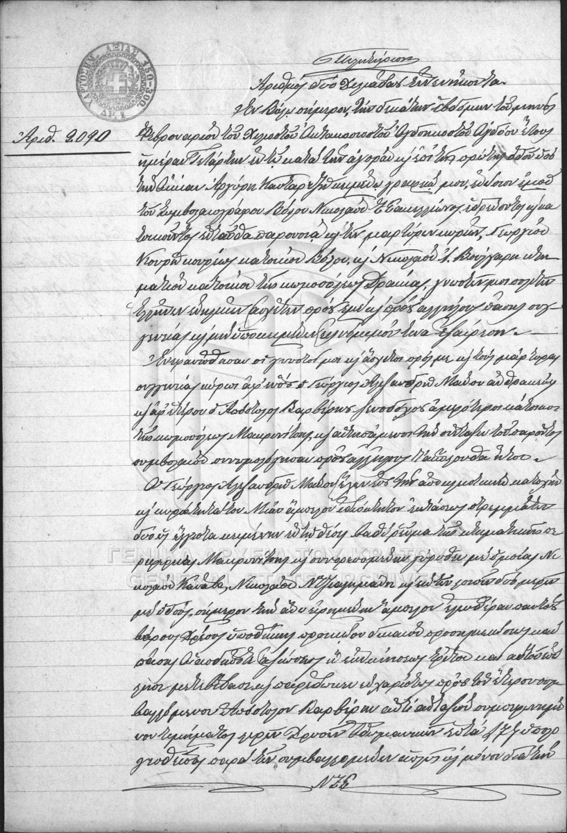 |  | [Item] GRGSA-MAG_NOT004.02.F000005.IT002090 Item #2090 - NIKOLAOS SAKELLION NOTARIAL ARCHIVE [17 Φεβρουαρίου 1888] Notarial deed. Sale agreement. |