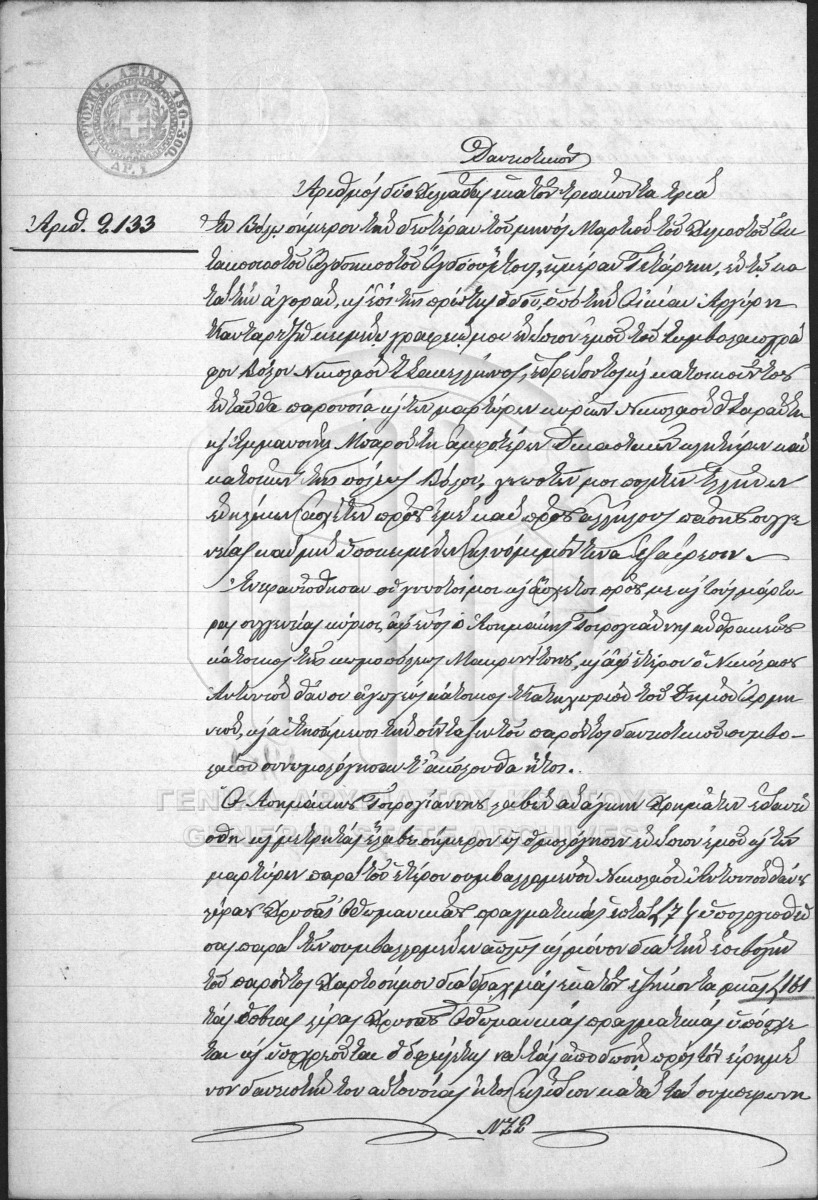 Item #2133 - NIKOLAOS SAKELLION NOTARIAL ARCHIVE  [2 Μαρτίου 1888]