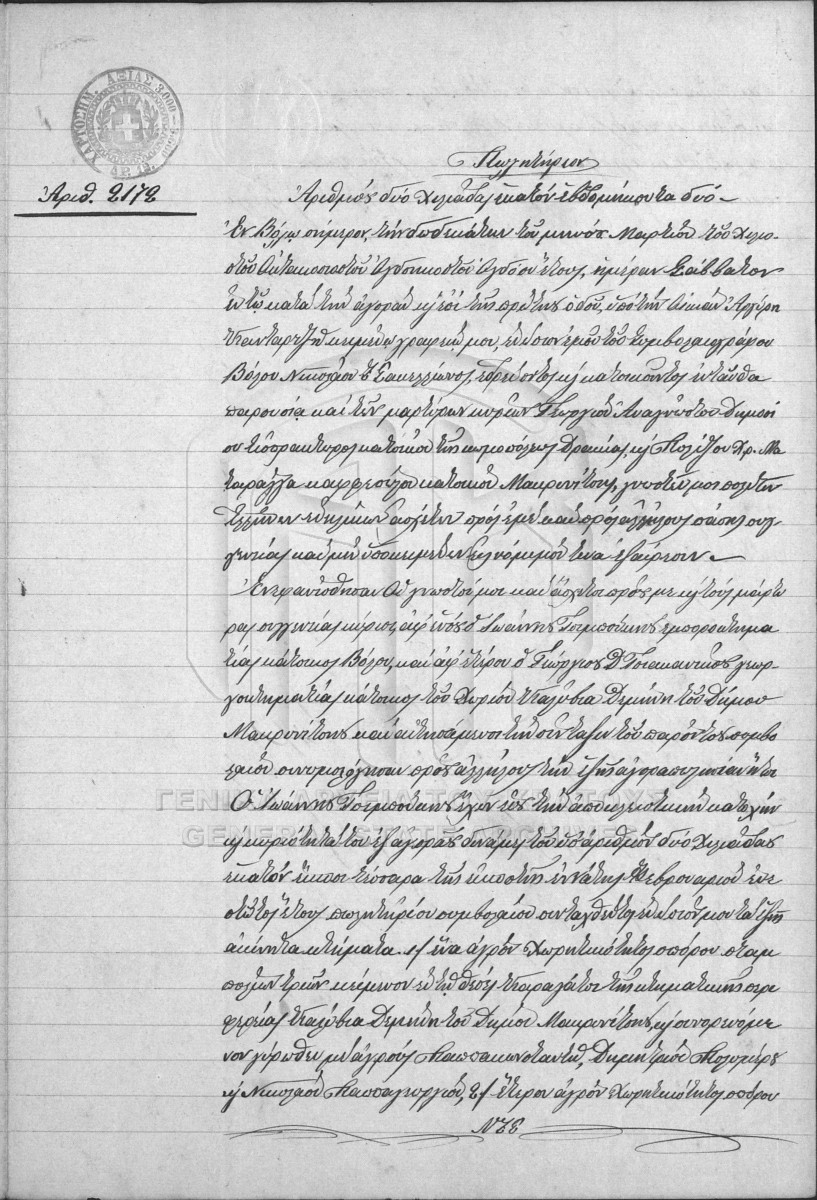 Item #2172 - NIKOLAOS SAKELLION NOTARIAL ARCHIVE  [12 Μαρτίου 1888]