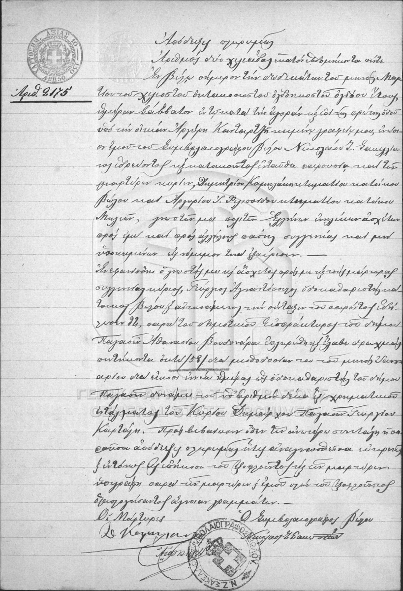 [Τεκμήριο] GRGSA-MAG_NOT004.02.F000005.IT002175 Τεκμήριο #2175 [12 Μαρτίου 1888] Συμβολαιογραφική πράξη. Απόδειξη πληρωμής. |