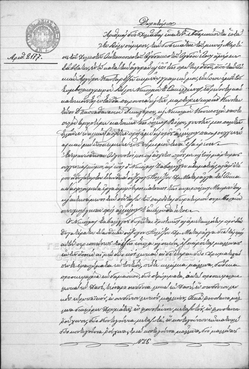 Item #2177 - NIKOLAOS SAKELLION NOTARIAL ARCHIVE  [12 Μαρτίου 1888]