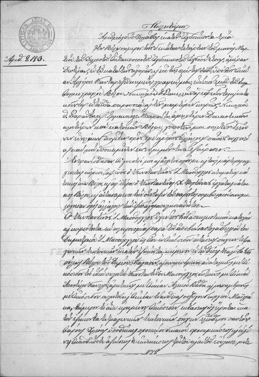 [Item] GRGSA-MAG_NOT004.02.F000005.IT002183 Item #2183 - NIKOLAOS SAKELLION NOTARIAL ARCHIVE [14 Μαρτίου 1888] Notarial deed. Sale agreement. |