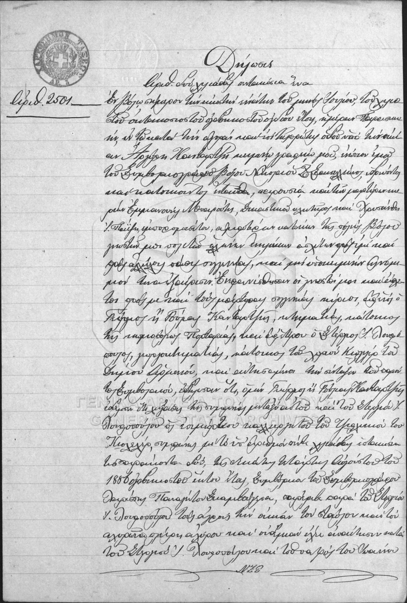 [Item] GRGSA-MAG_NOT004.02.F000006.IT002501 Item #2501 - NIKOLAOS SAKELLION NOTARIAL ARCHIVE [29 Ιουλίου 1888] Notarial deed. Statement. |