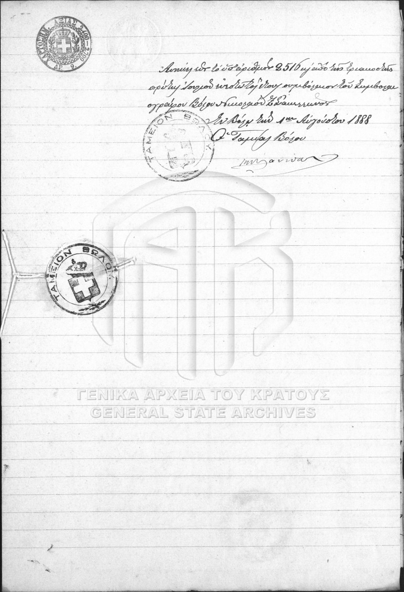 [Item] GRGSA-MAG_NOT004.02.F000006.IT002516 Item #2516 - NIKOLAOS SAKELLION NOTARIAL ARCHIVE [31 Ιουλίου 1888] Notarial deed. Sale agreement. |