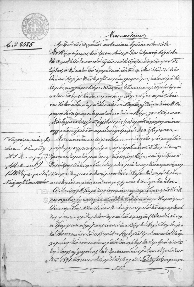 Item #2585 - NIKOLAOS SAKELLION NOTARIAL ARCHIVE  [31 Αυγούστου 1888]