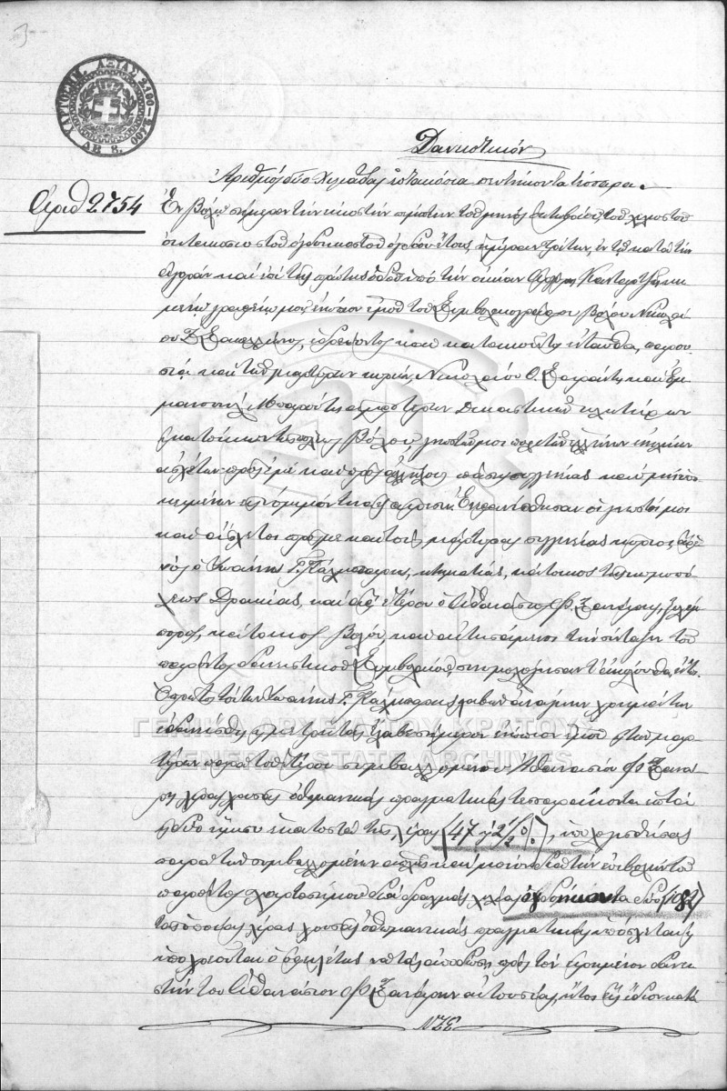 [Τεκμήριο] GRGSA-MAG_NOT004.02.F000007.IT002754 Τεκμήριο #2754 [25 Οκτωβρίου 1888] Συμβολαιογραφική πράξη. Δανειστικό. |