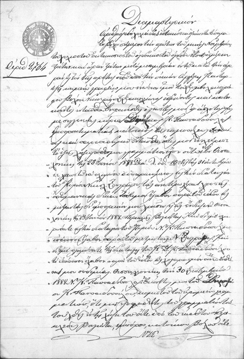 [Item] GRGSA-MAG_NOT004.02.F000007.IT002764 Item #2764 - NIKOLAOS SAKELLION NOTARIAL ARCHIVE [1 Νοεμβρίου 1888] Notarial deed. Notice of protest. |