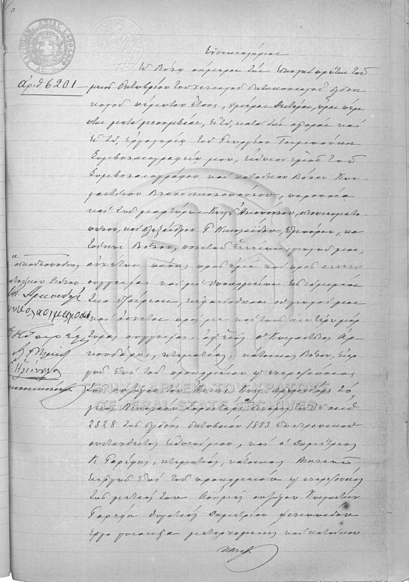 Item #6201 - KON. VLACHONIKOPOULOS NOTARIAL ARCHIVE ( IOANNIS GALLEAS NOTARIAL COLLECTION)  [21 Οκτωβρίου 1885]